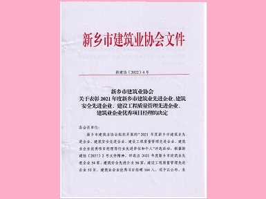072022.04河南二建集團鋼結(jié)構(gòu)有限公司再次榮獲“新鄉(xiāng)市建筑業(yè)先進企業(yè)”等殊榮 -