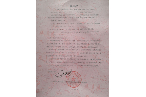 102019.01北京國(guó)電德勝工程項(xiàng)目管理有限公司錫林熱 電項(xiàng)目監(jiān)理部給鋼構(gòu)公司發(fā)來(lái)表?yè)P(yáng)信 -
