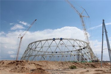 172017.07公司蒙能錫林發(fā)電廠2×350MW供熱機(jī)組工程鋼結(jié)構(gòu)間冷塔第三層順利合攏 -