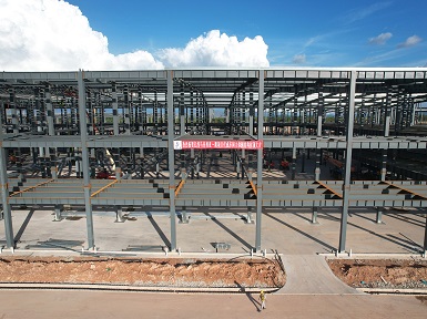 222024.08億緯馬來(lái)西亞一期項(xiàng)目施工總承包工程化成車(chē)間二標(biāo)段主體鋼結(jié)構(gòu)順利封頂
