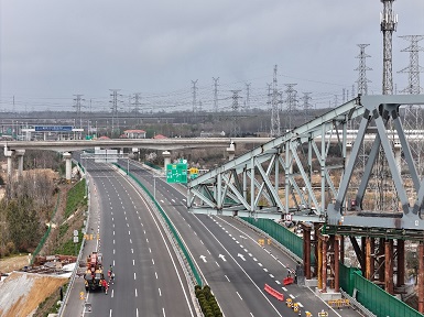 河南二建集團鋼結構有限公司跨董梁高速特大橋鋼桁梁項目首次頂推施工順利完成