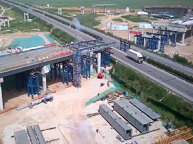 河南二建集團鋼結構有限公司蘭考至沈丘高速公路蘭考至太康段三標鋼箱梁施工工程順利開始首次頂推施工