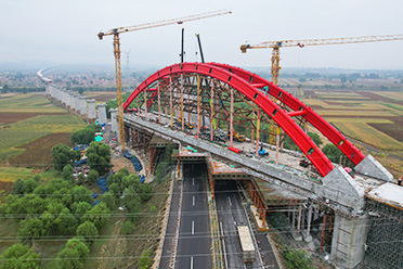 內(nèi)蒙集大鐵路豐鎮(zhèn)特大橋鋼管拱橋工程位于內(nèi)蒙古豐鎮(zhèn)市,總長144米,橫跨二廣高速公路,橋面寬18.5米,鋼管拱部最高達(dá)48.12米,拱肋外觀整體內(nèi)傾8,形似提籃式。 -
