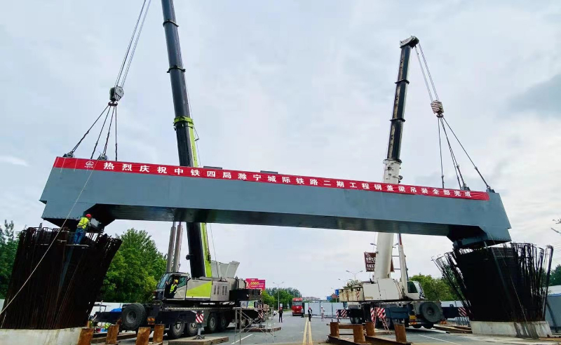 方唐高速跨蘭南高速鋼箱梁項(xiàng)目?該工程跨蘭南高速,全線鋼箱梁吊裝跨度最大為88米。 -