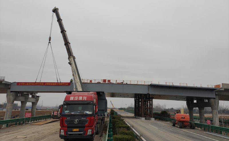 滁來全快速通道全椒段與滁馬高速公路互通立交工程橋?qū)?9m,長55m,箱體鋼材材質(zhì)為Q345qD,總重量575.83噸;單節(jié)段最重47.19噸。 -