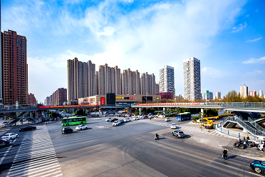 新鄉(xiāng)市金穗大道與新二街交叉口人行天橋該項(xiàng)目位于新鄉(xiāng)市金穗大道與新二街交叉口,主橋跨越金穗大道和新二街,總長度369m、寬度4.5m,人行梯道寬度3.5m,跨越金穗大道的主橋長約77m,跨越新二街的主橋約55m,四角用弧形連接。交叉口南側(cè)為寶龍城市廣場。 -