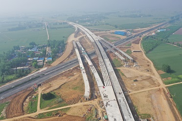 蘭考至太康段傅集樞紐互通鋼箱梁工程用鋼量約4200噸,采用步履式頂推施工。 -
